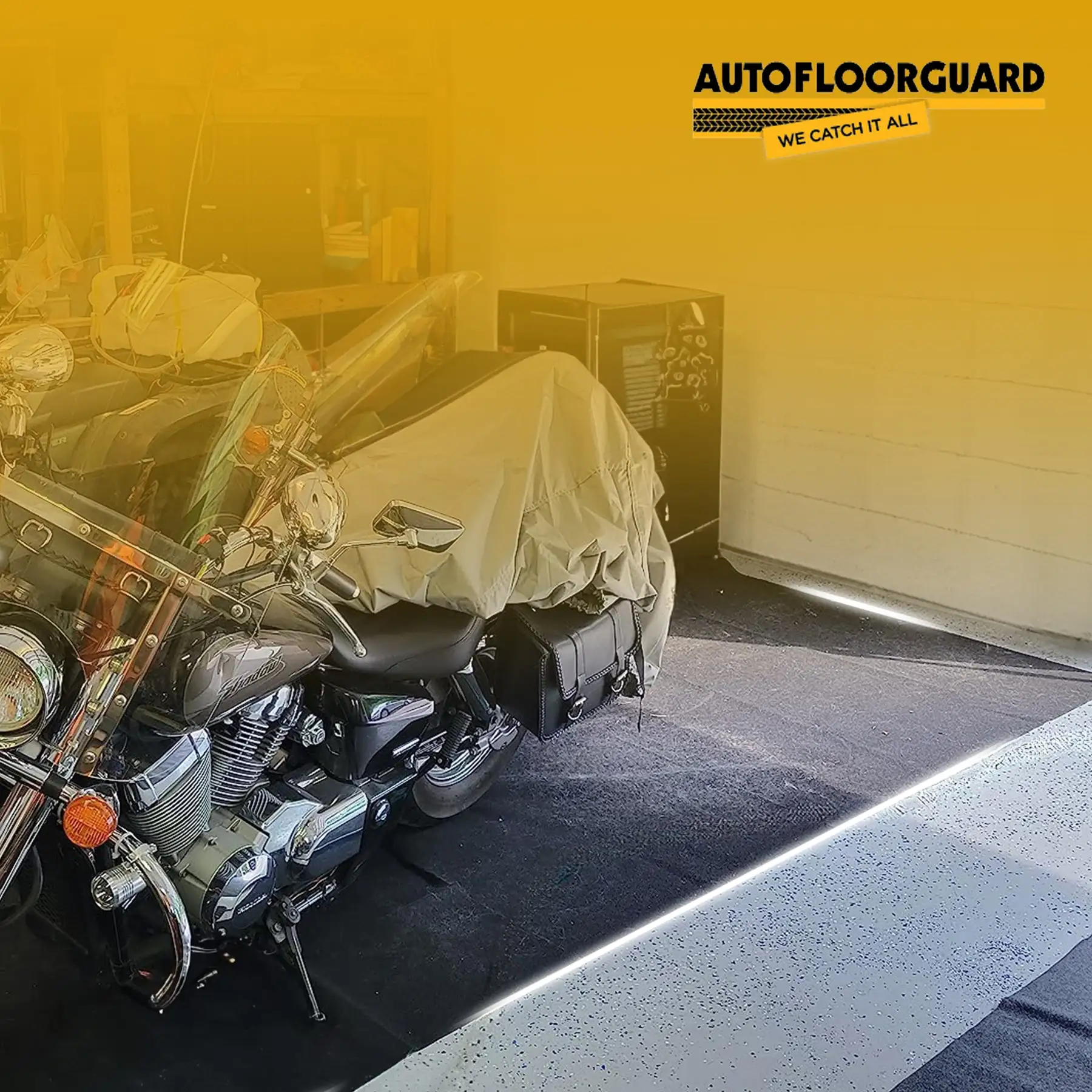 Gone are the days of using old cardboard boxes to protect your garage or shop floor from oil stains, mud, or stray debris. The AutoFloorGuard carpet mat protects your garage with a design that stays in place and keeps outside elements on the mat only.