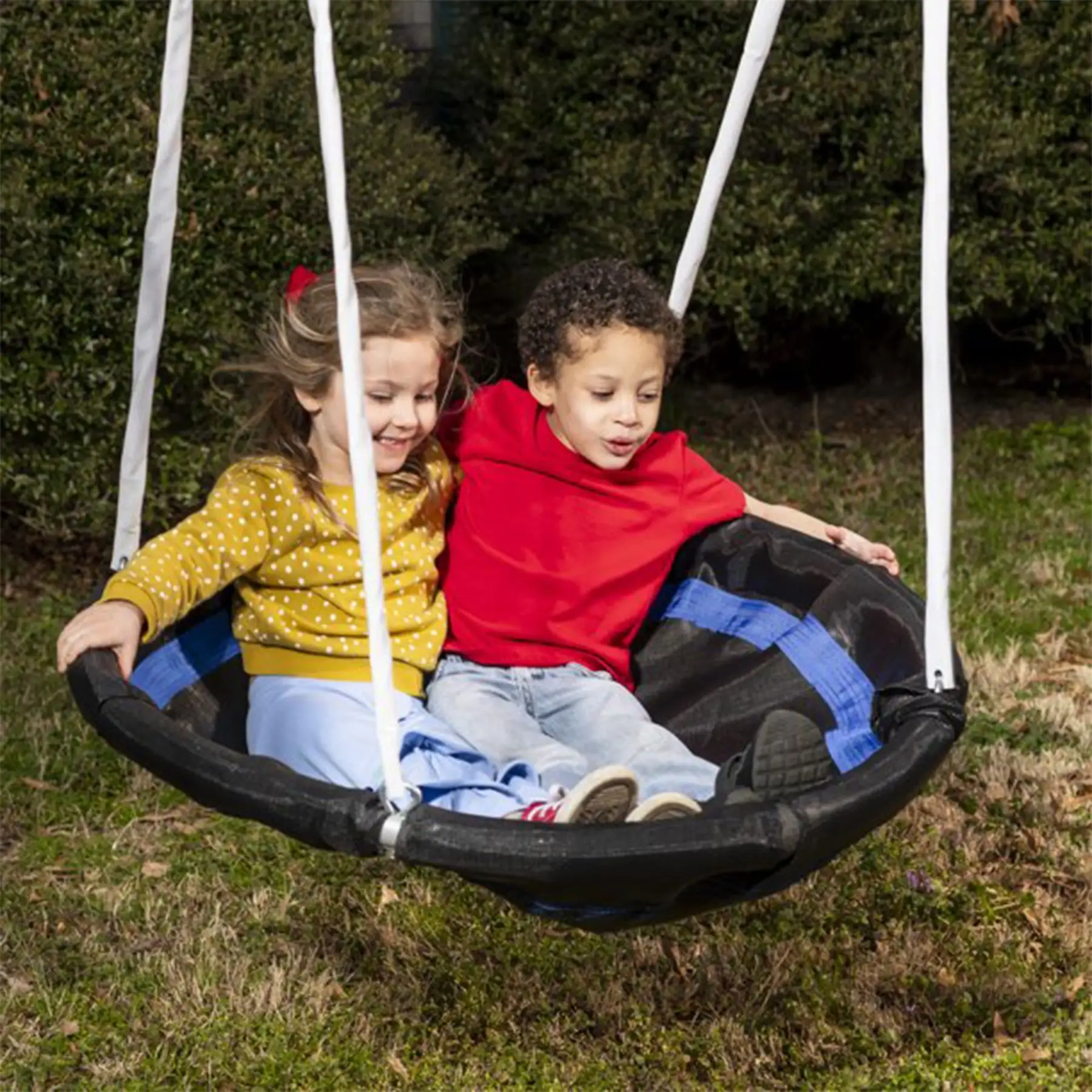 - SUPER DISC swing and see-saw can hold 2 kids each for fun with friends